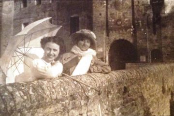 If you are romantic like I am, take a look at these two beautiful photographs: the first shows Enrico’s grandparents taking a walk in the country when they were young, right on the Via Tavanara that goes towards Sanguinetto (where we are). In the background you can see the castle of Sanguinetto and the church. The second picture shows Enrico’s grandmother – she’s the one with the umbrella – together with her cousin, and in the background, you can just make out the castle.